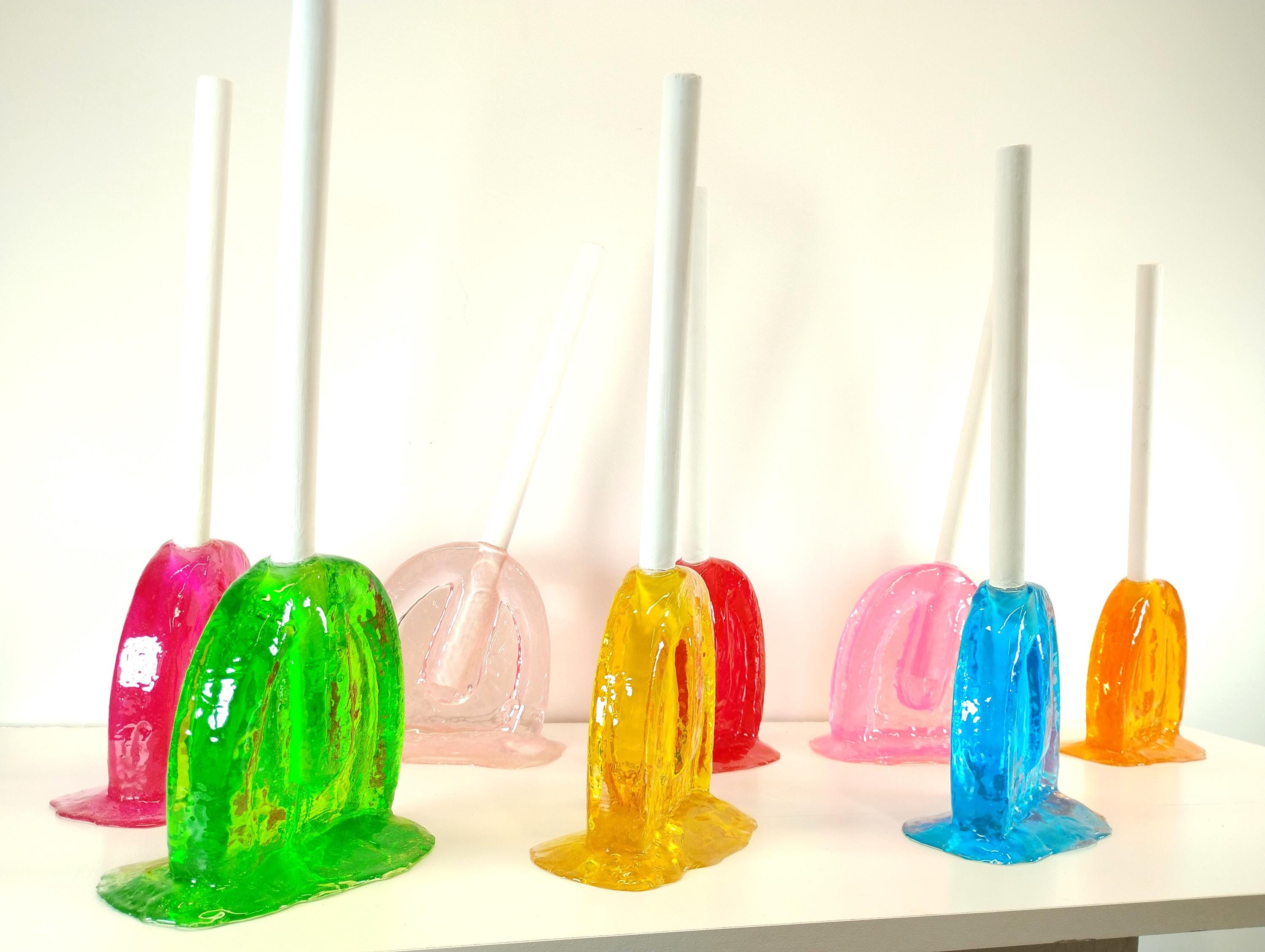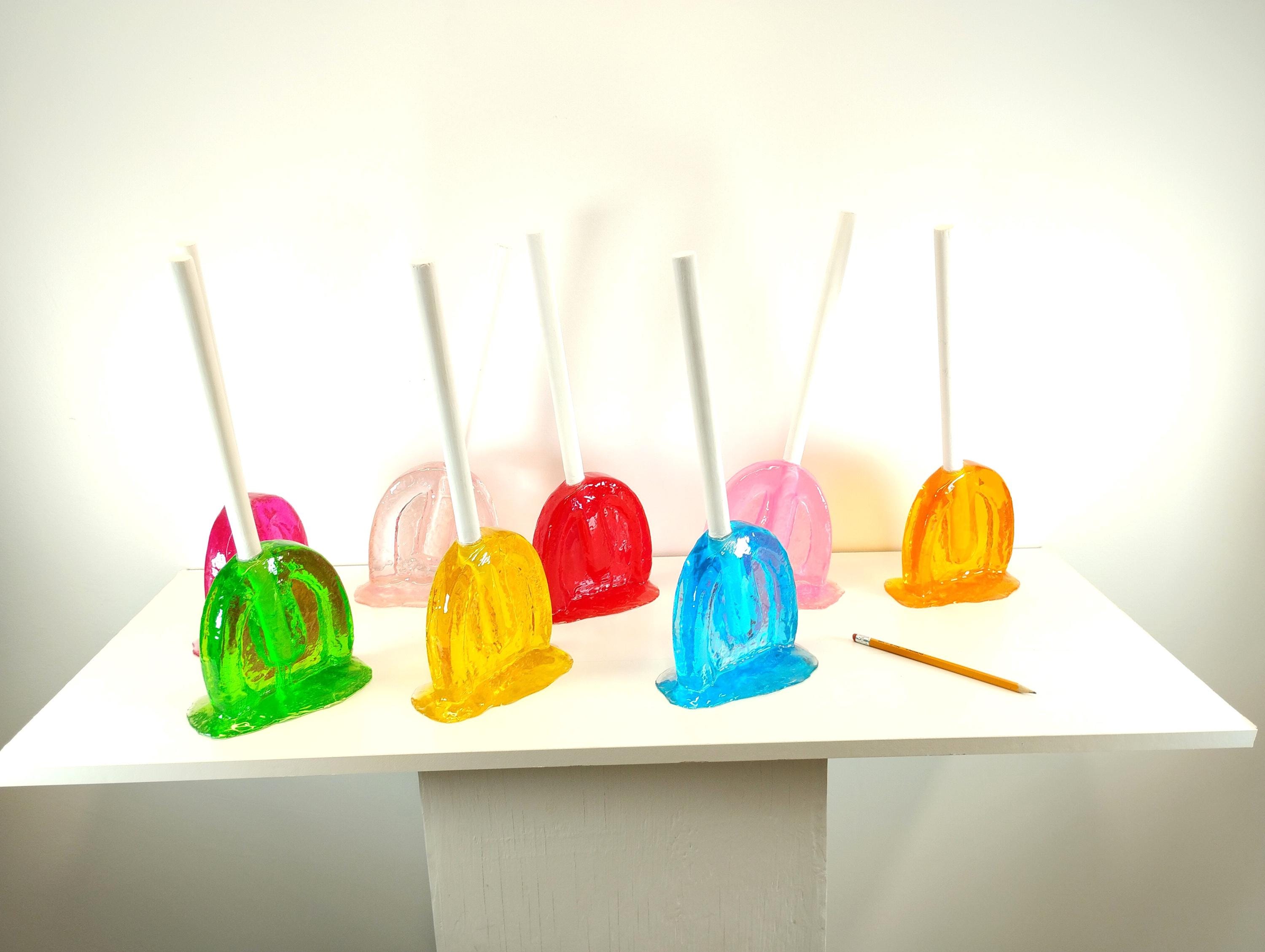 Giant oversized suckers lollypops tootsie pops melting resin sculpture