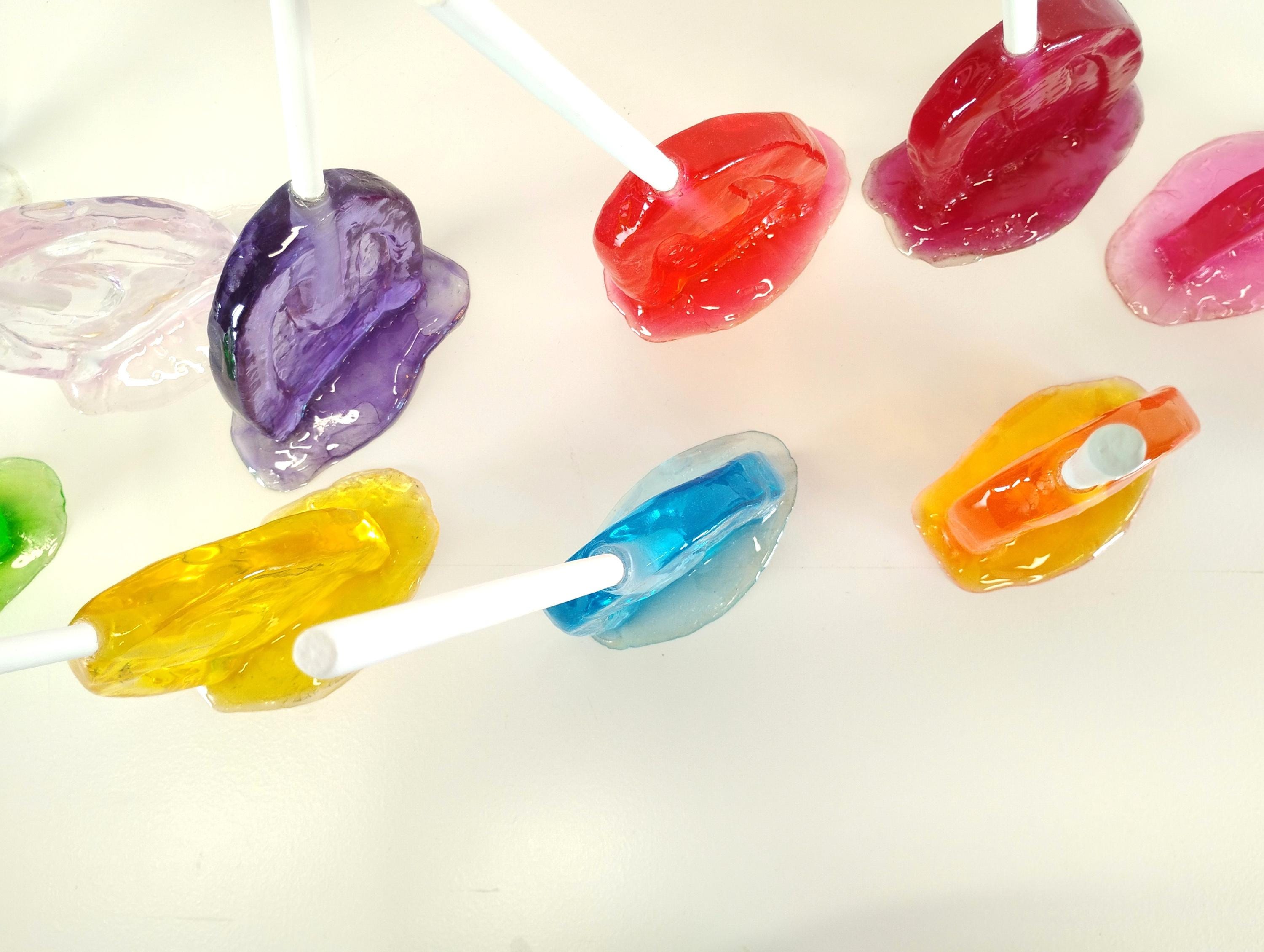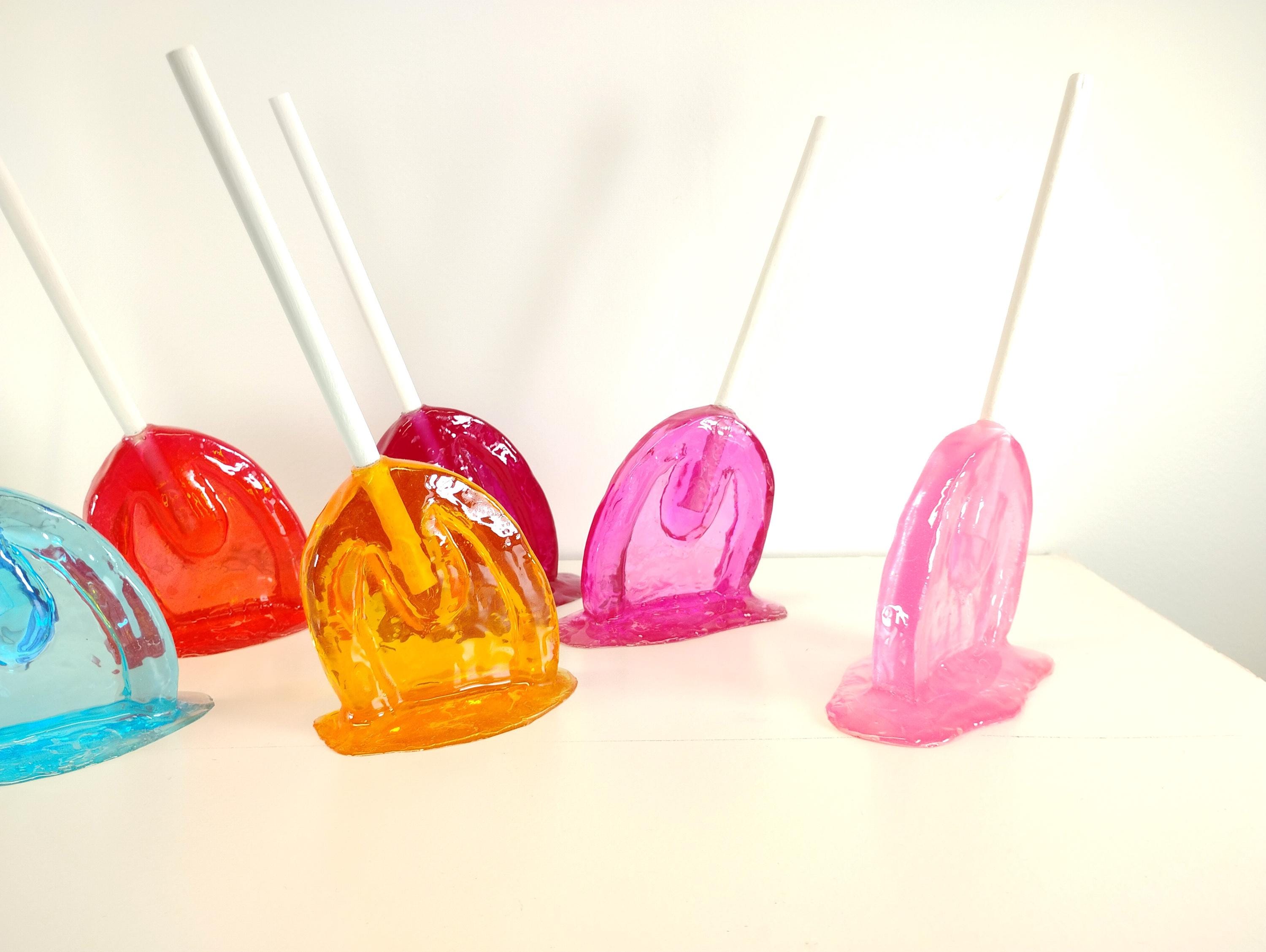 This gorgeous whimsical melting resin sucker sculpture has been handmade in my studio and colored with pigments.