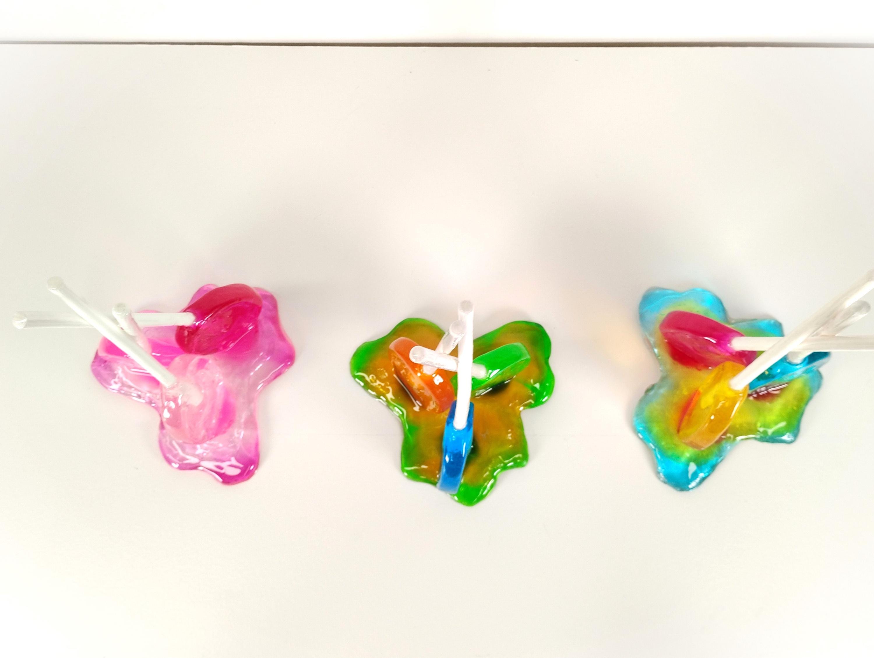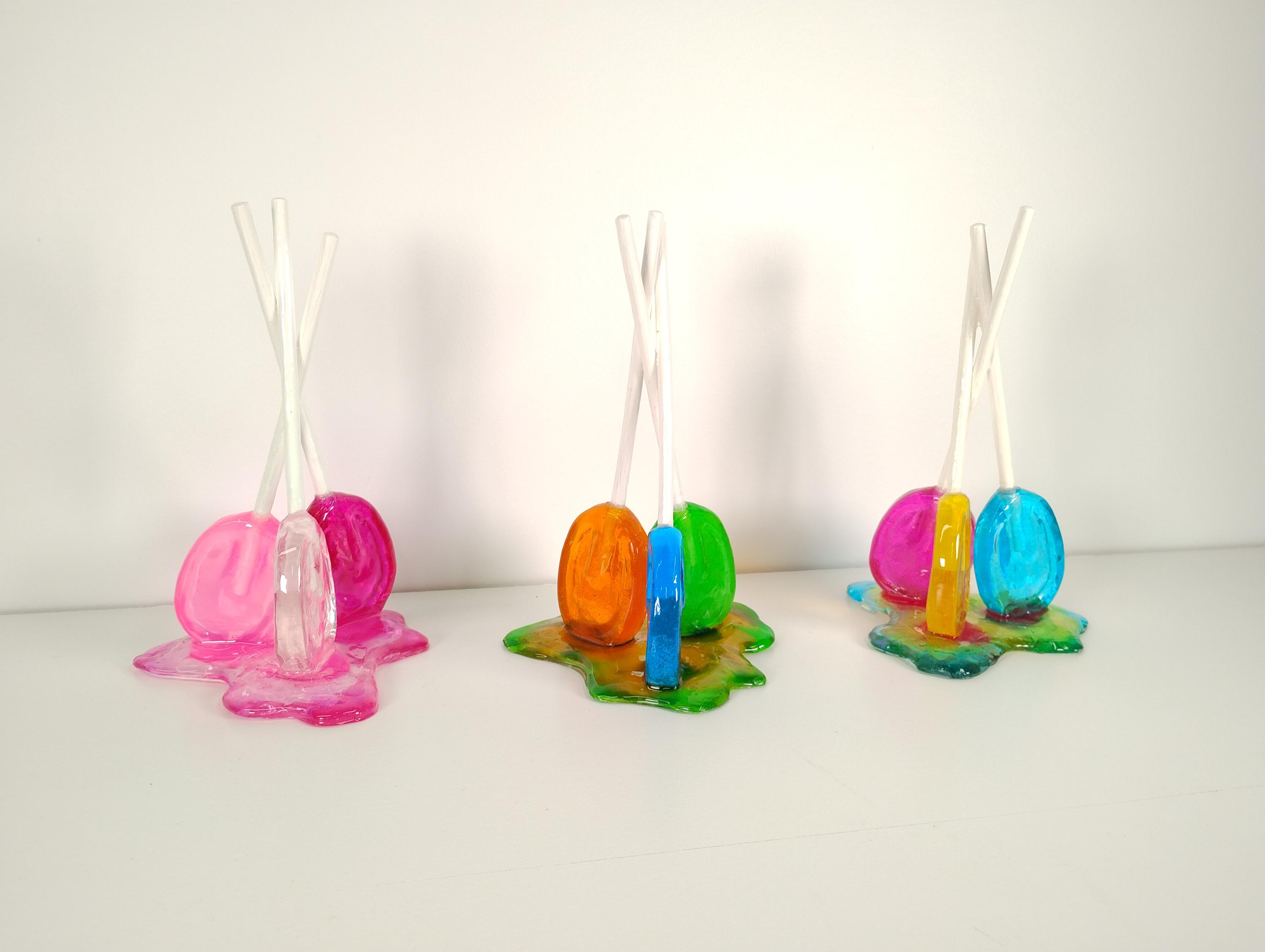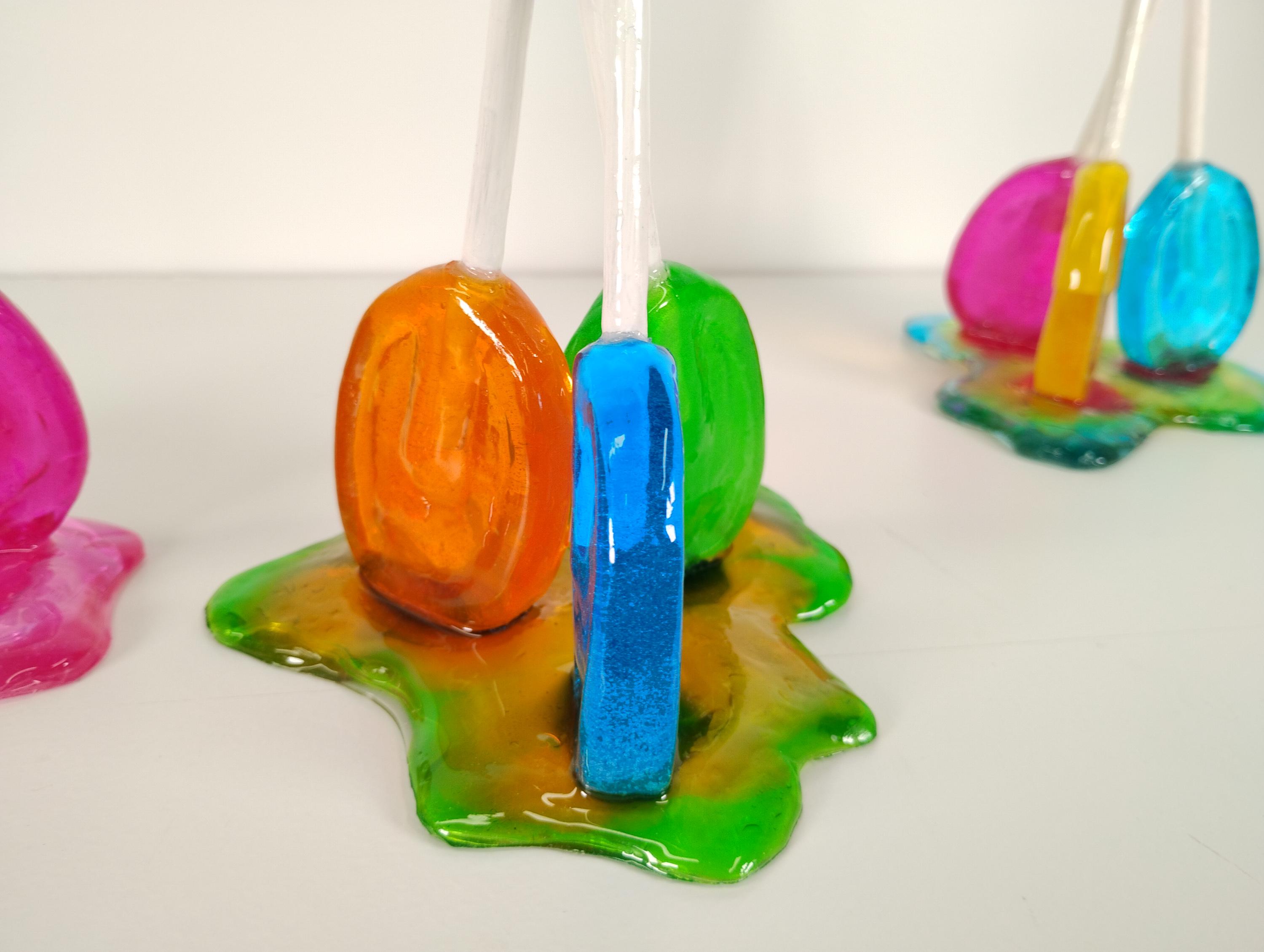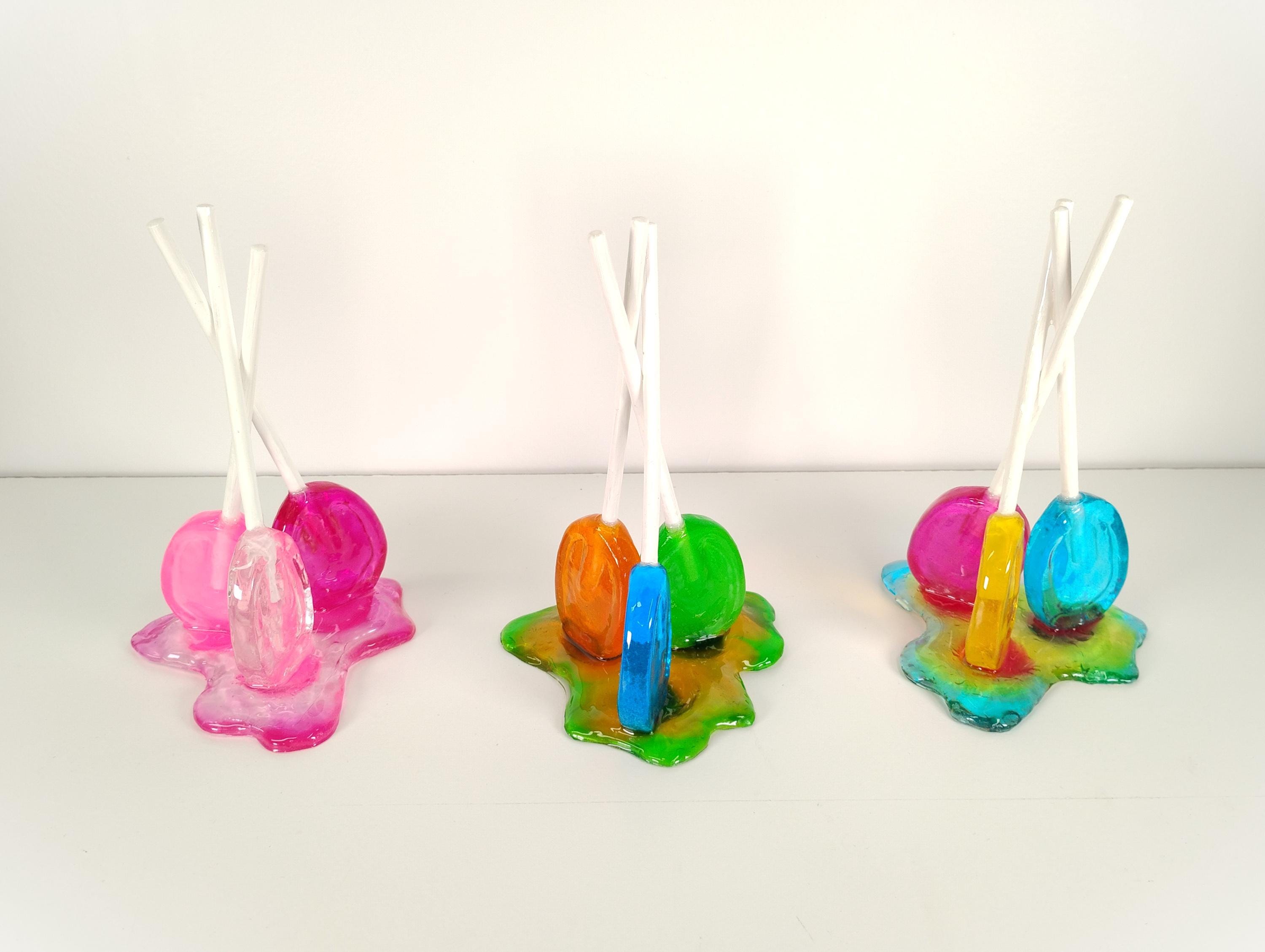 This gorgeous whimsical melting resin sucker sculpture has been handmade in my studio and colored with pigments.