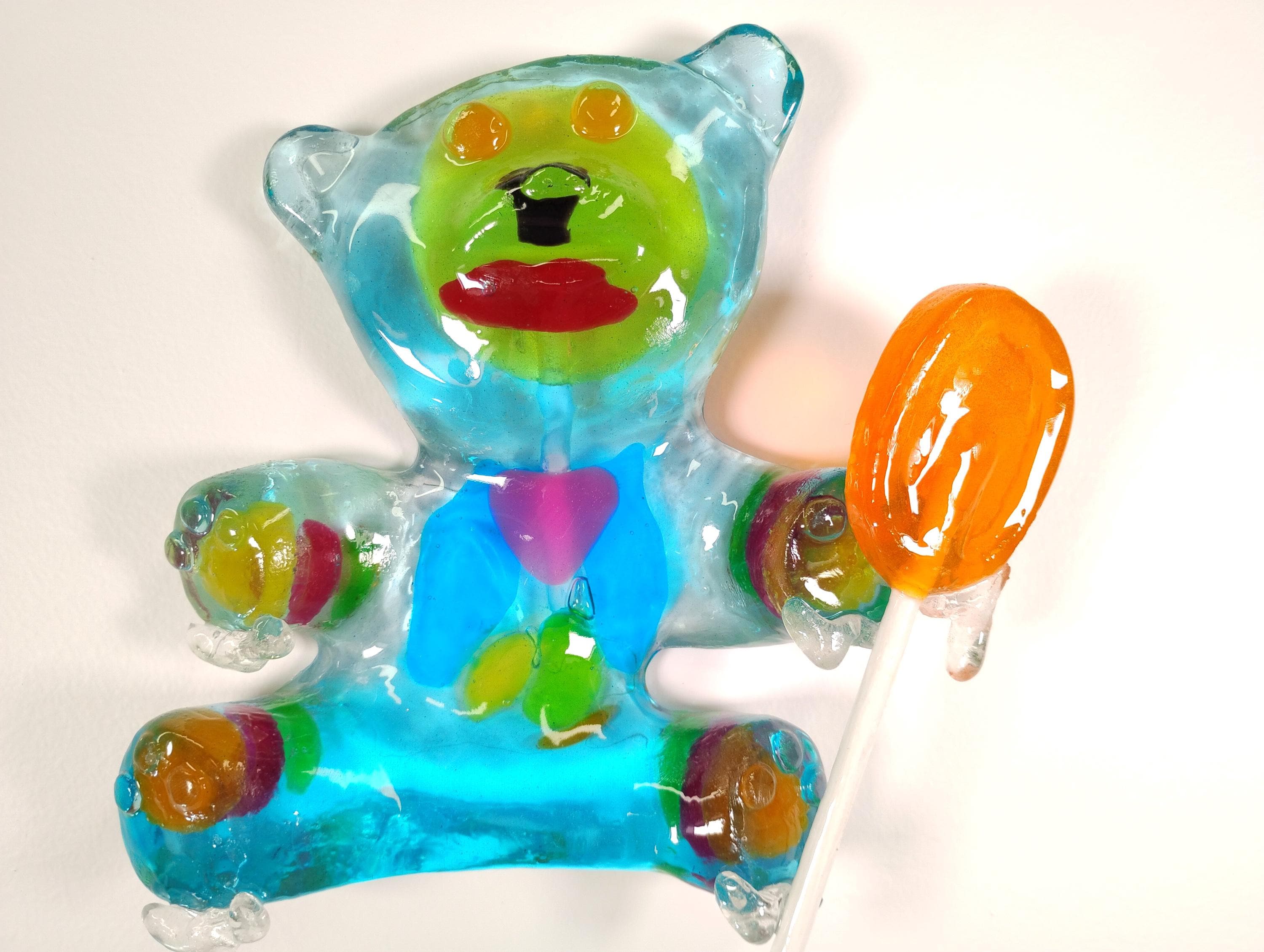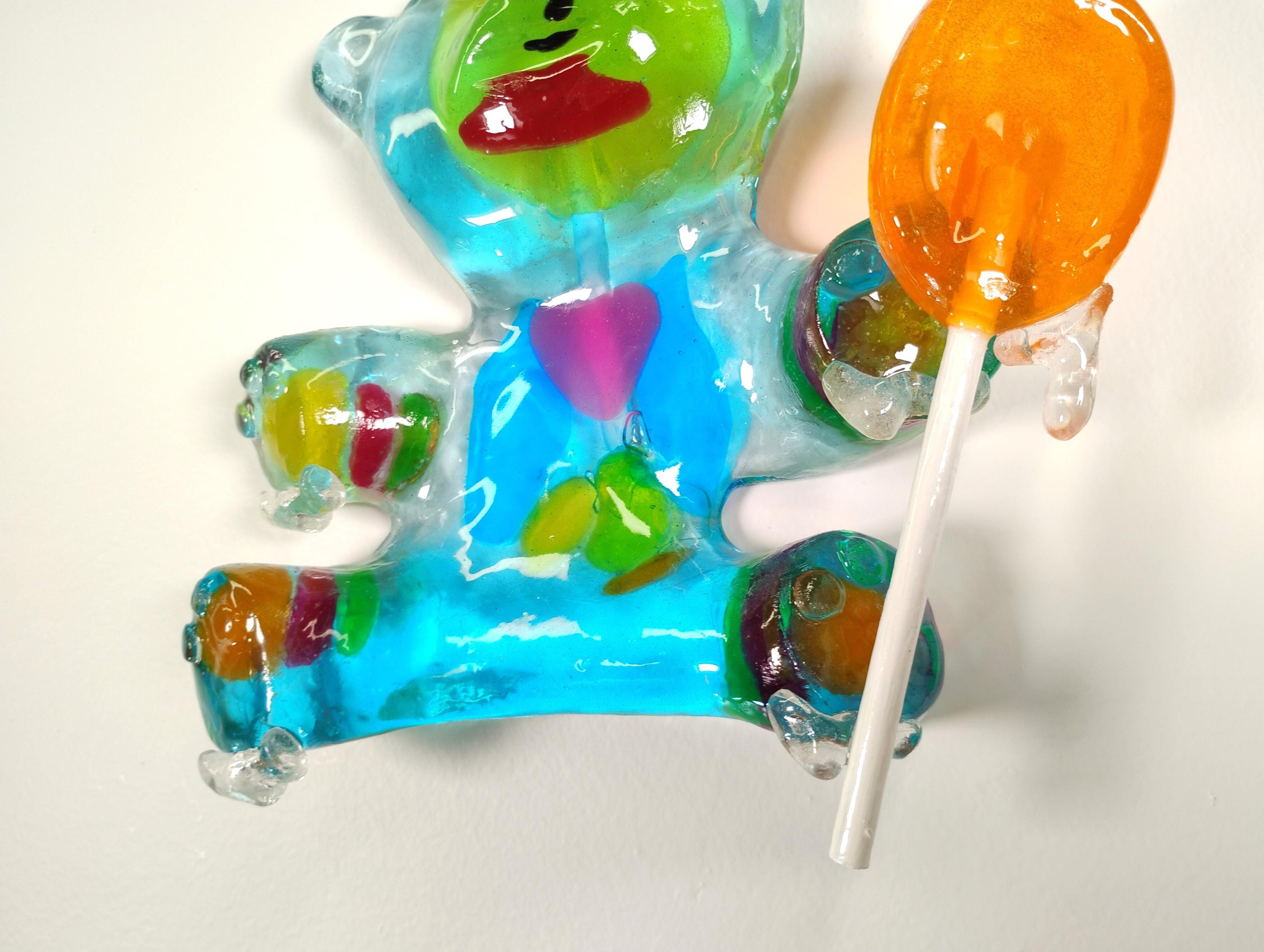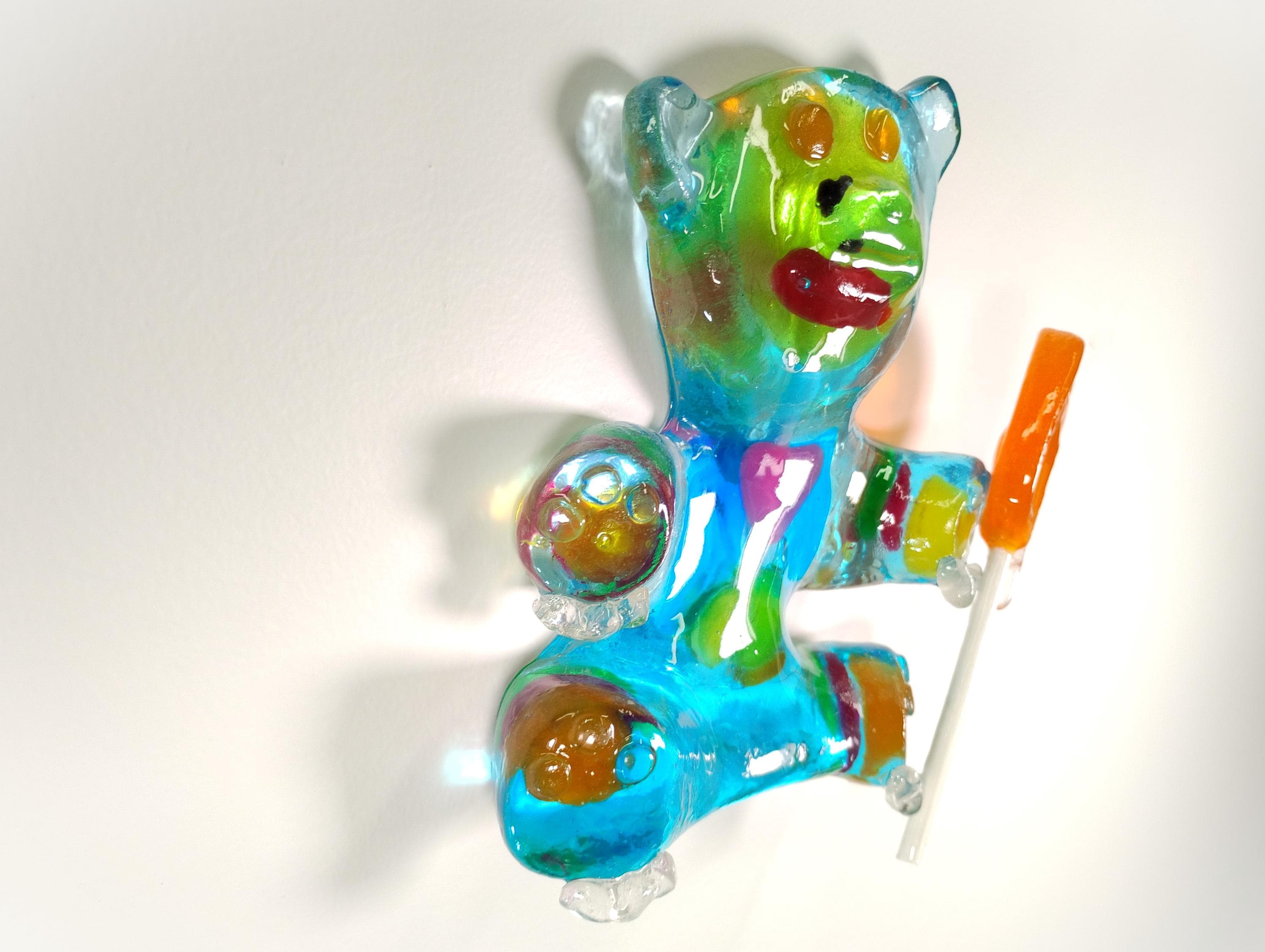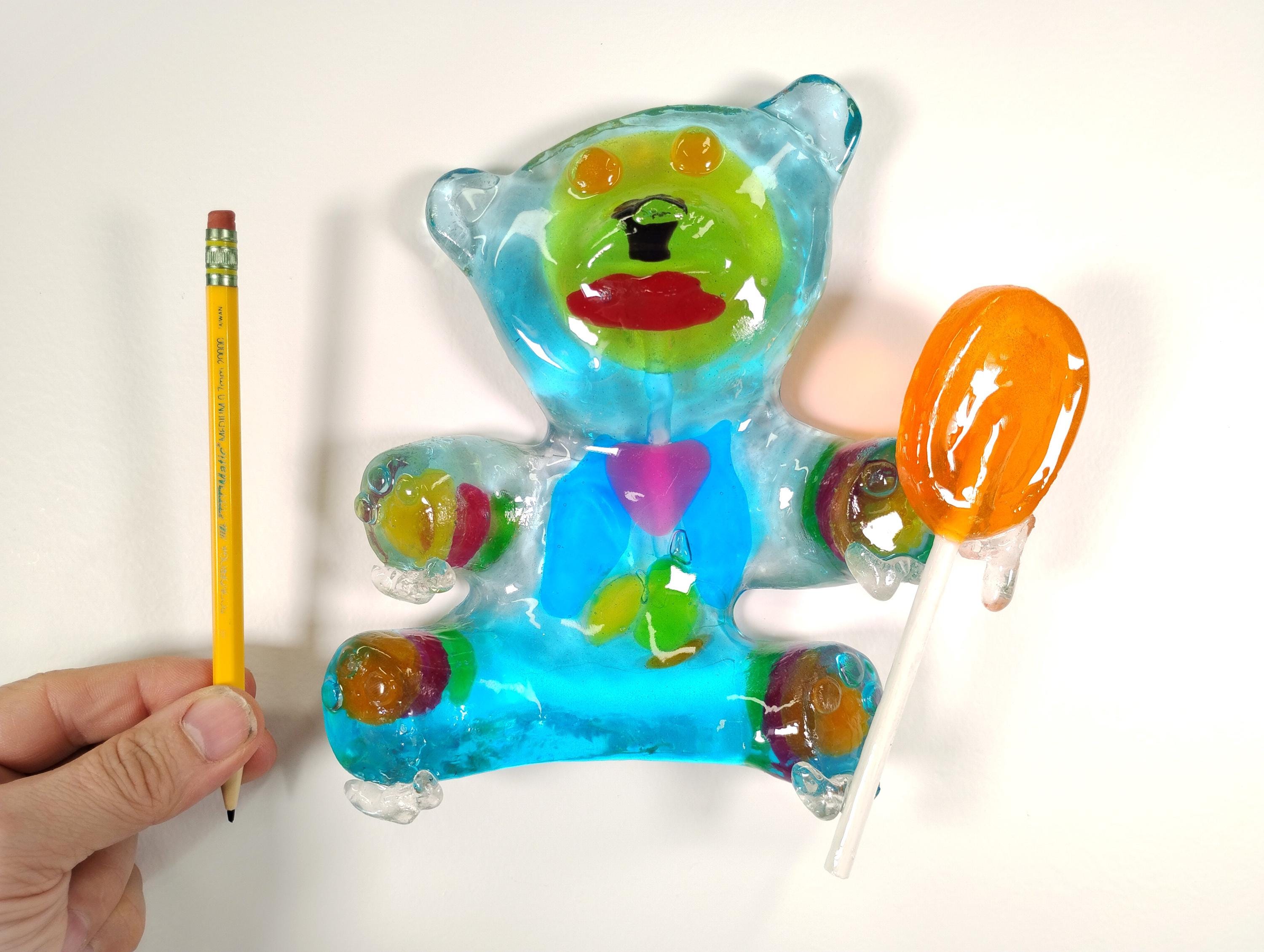 This gorgeous whimsical melting resin candy bear sculpture has been handmade in my studio and colored with pigments.