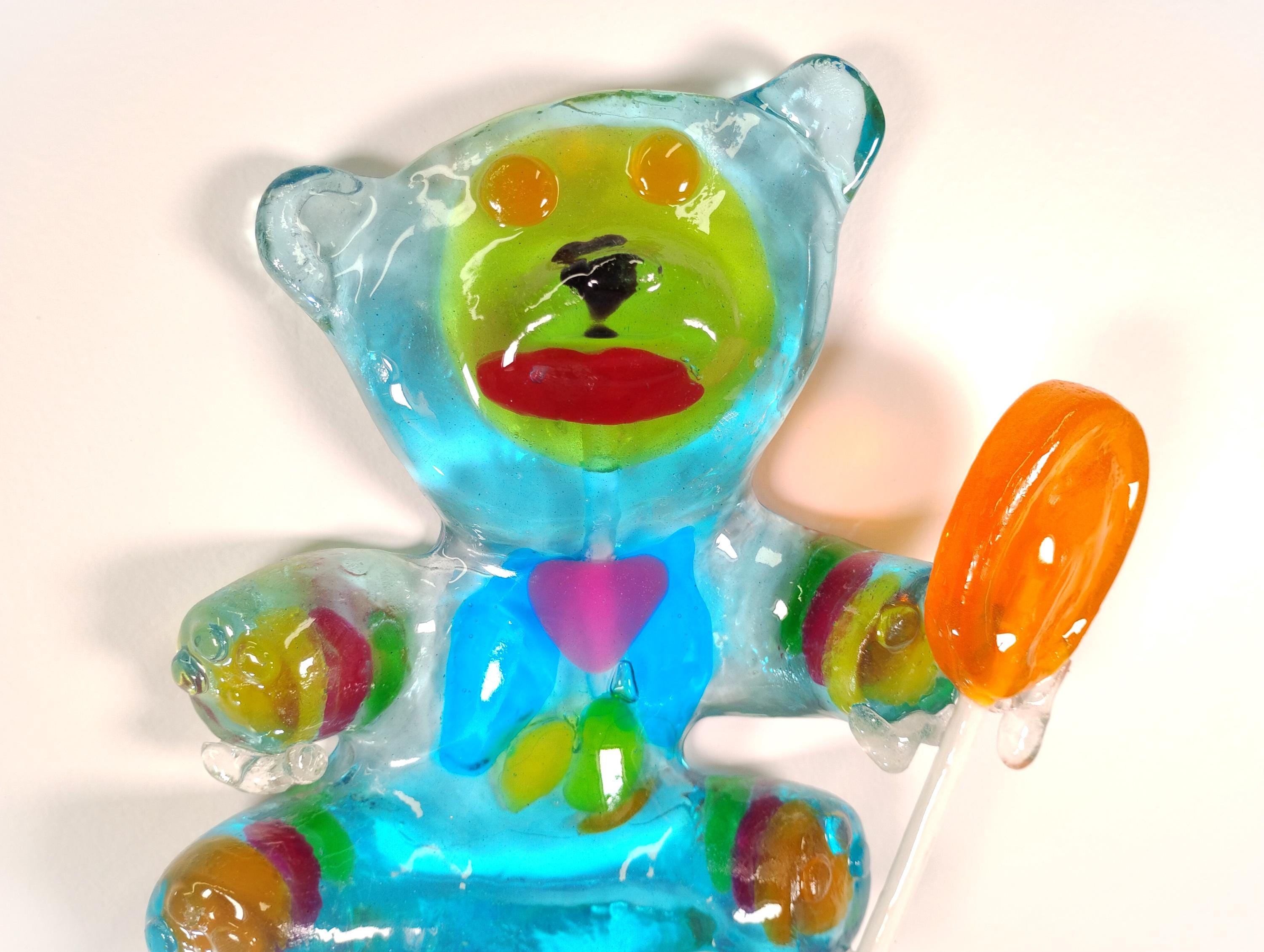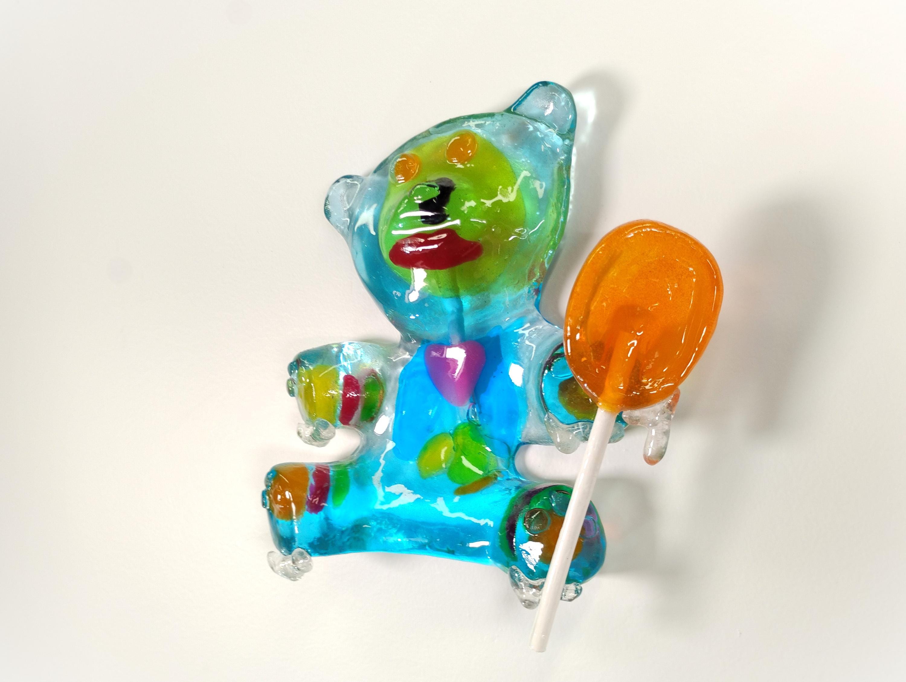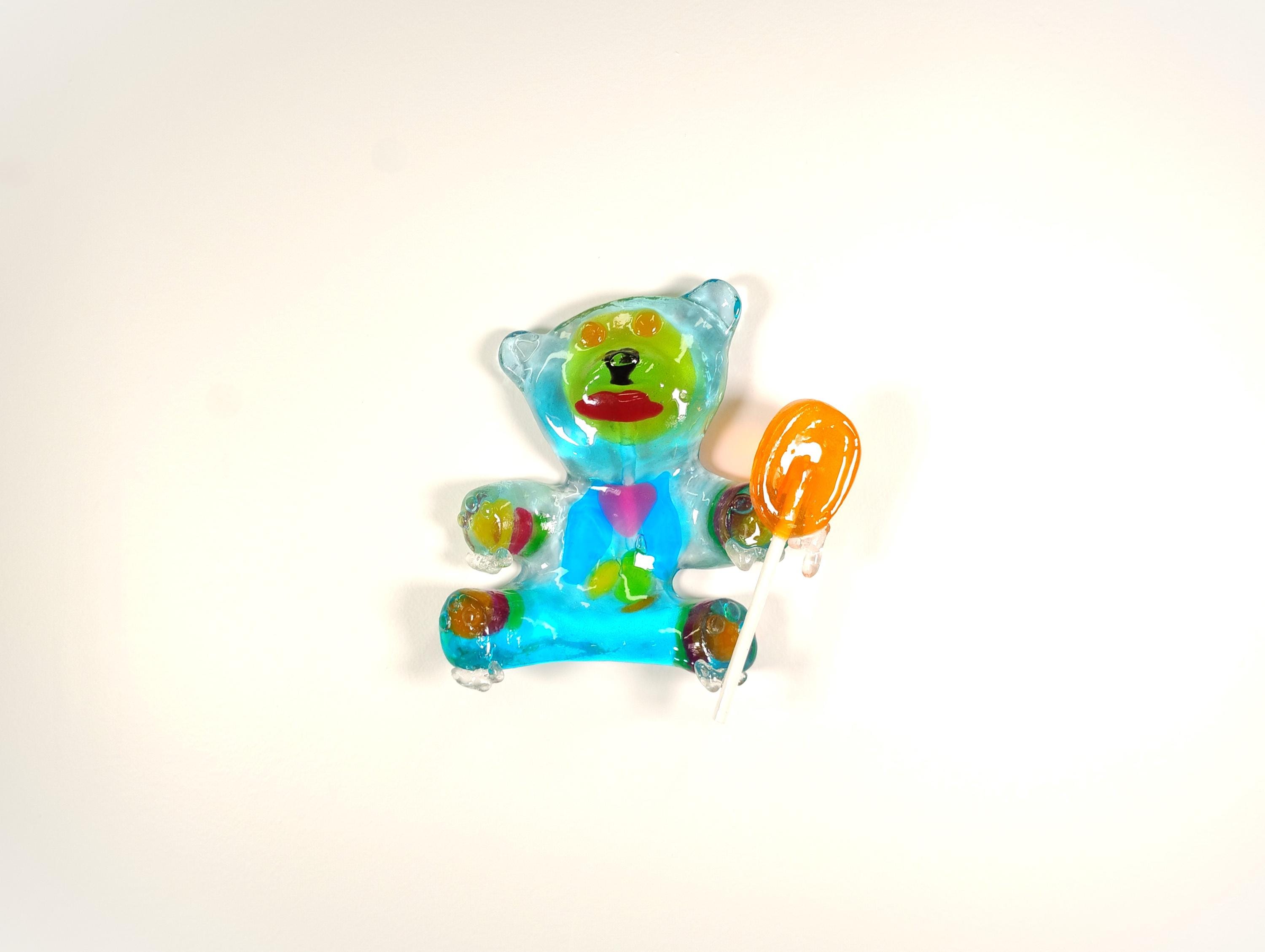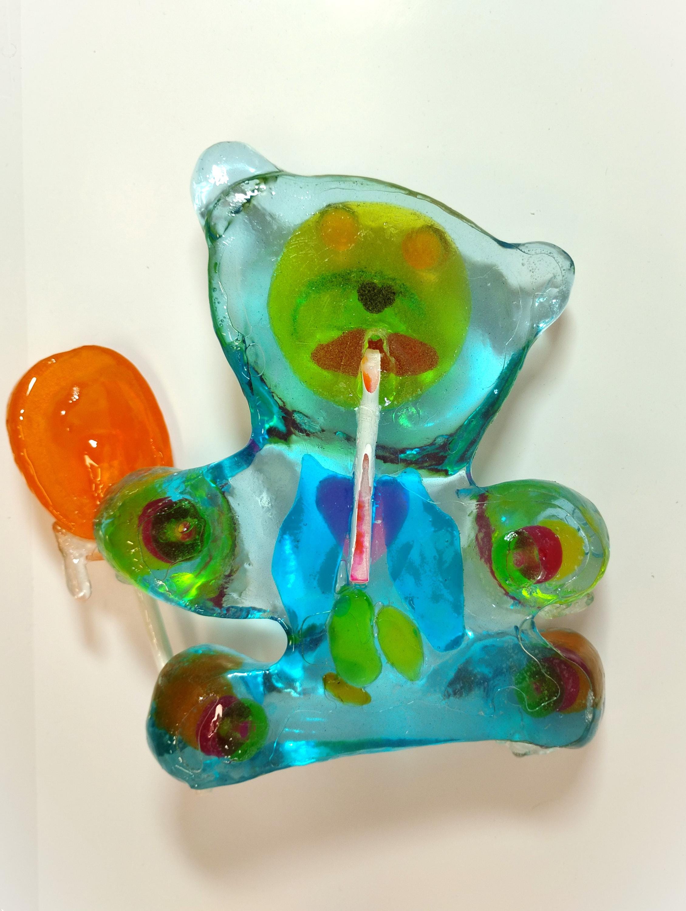 This gorgeous whimsical melting resin candy bear sculpture has been handmade in my studio and colored with pigments.