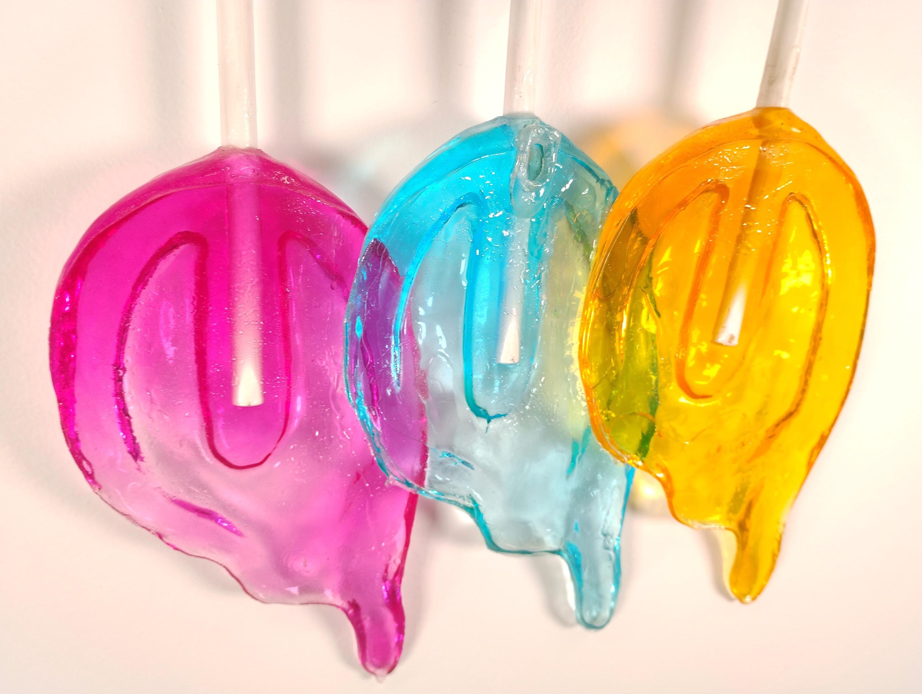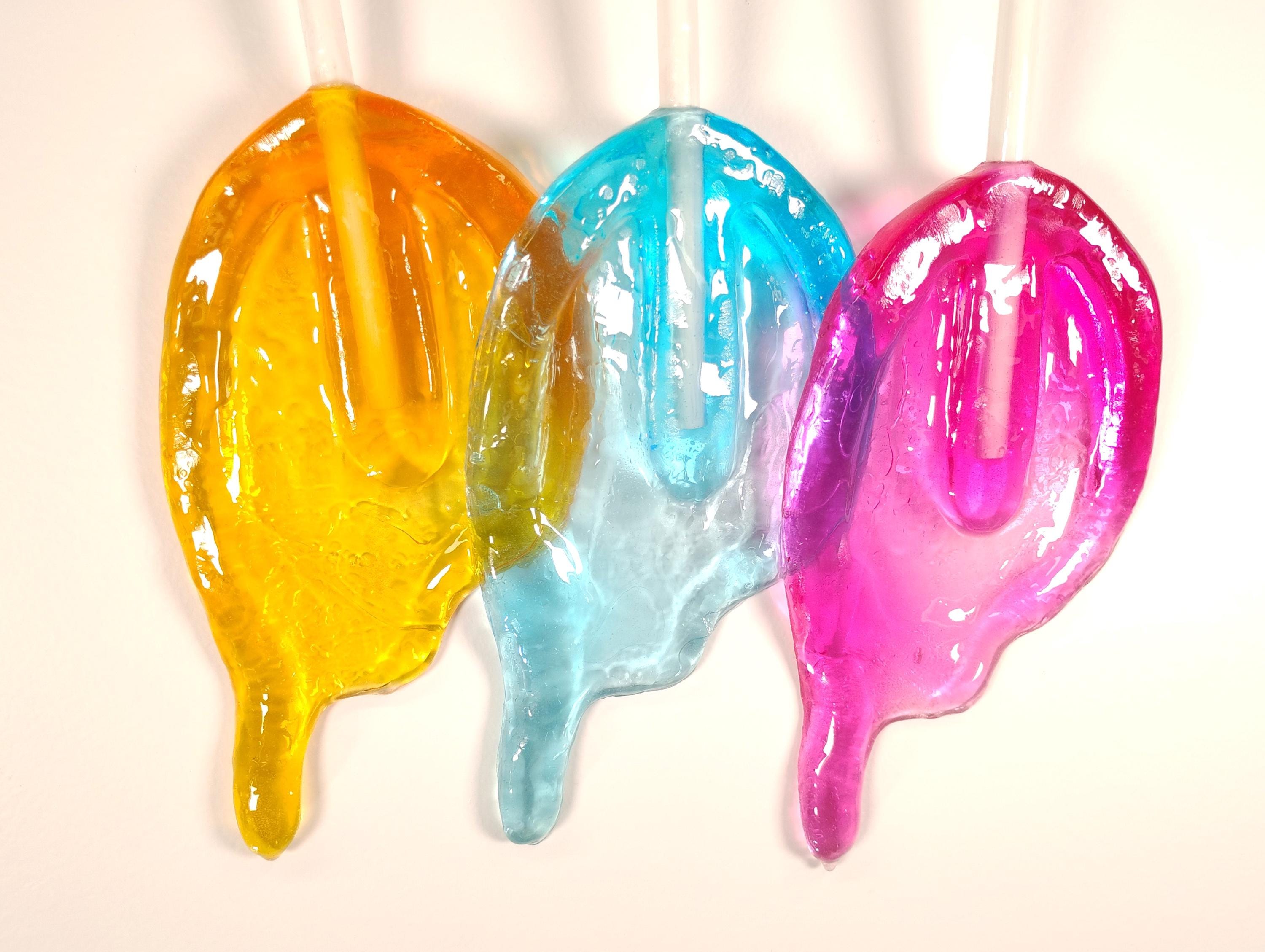 This gorgeous whimsical melting resin sucker sculpture has been handmade in my studio and colored with pigments.